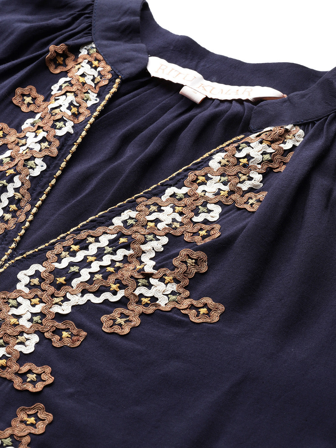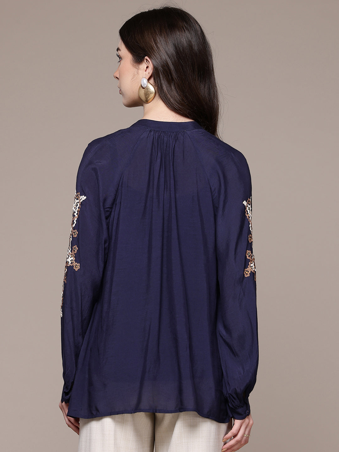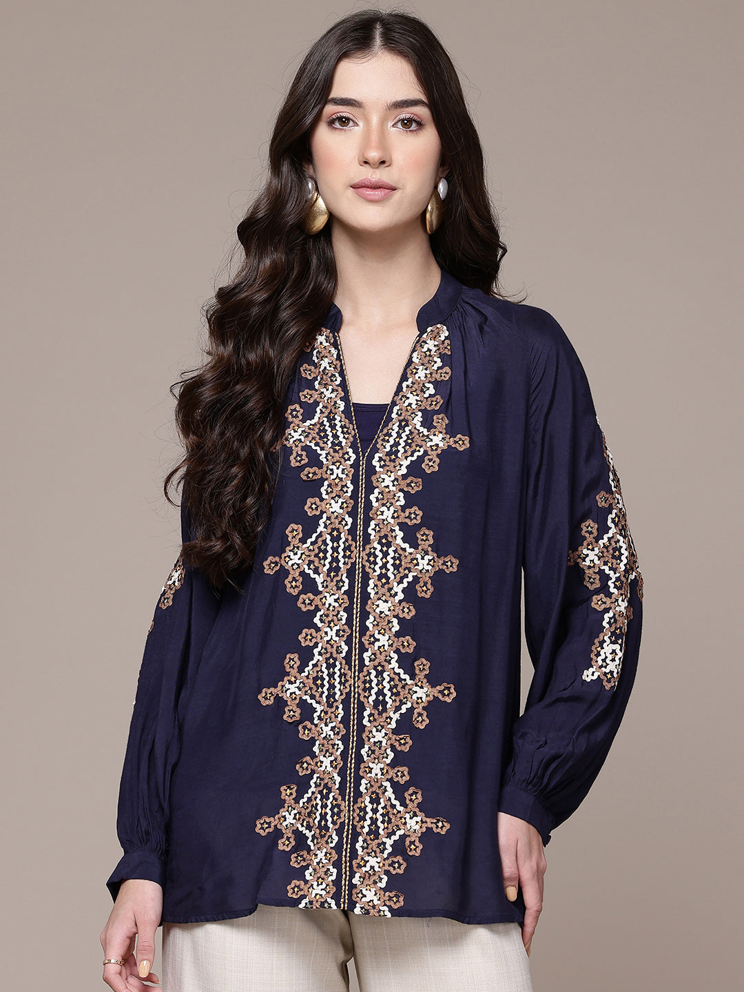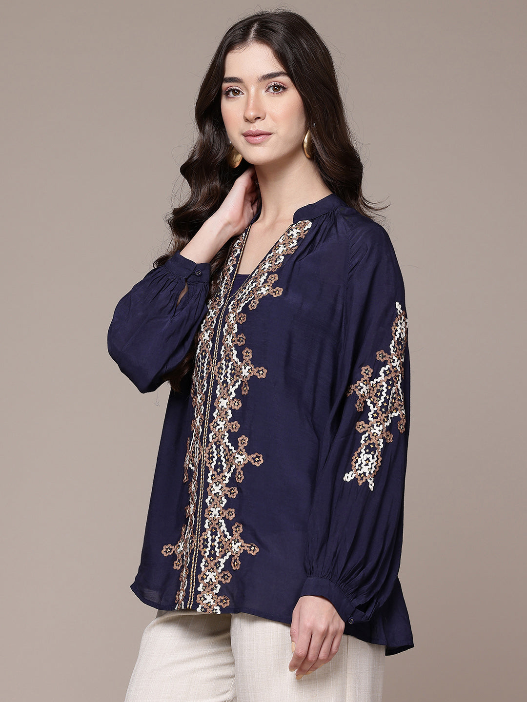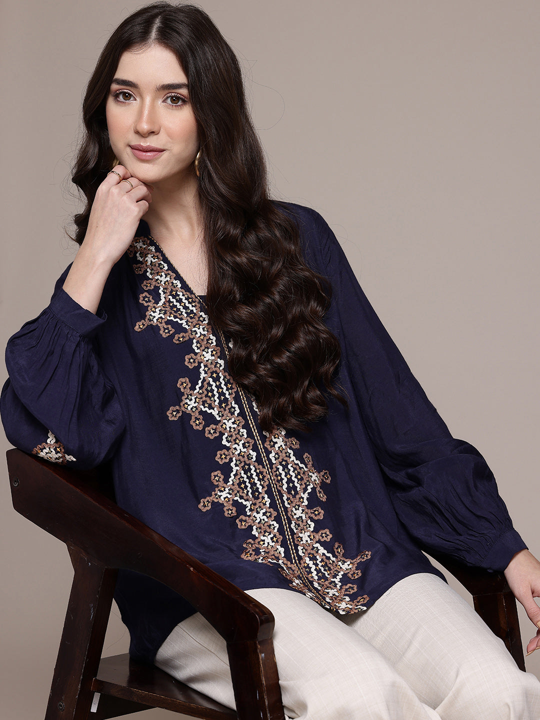 A modern classic, this blue solid top with camisole is your go-to for polished comfort. The v-neckline and full sleeves exude understated grace, while the soft texture enhances everyday elegance. Ideal for office brunches or gallery walks, it’s best paired with high-waisted trousers or tailored skirts.