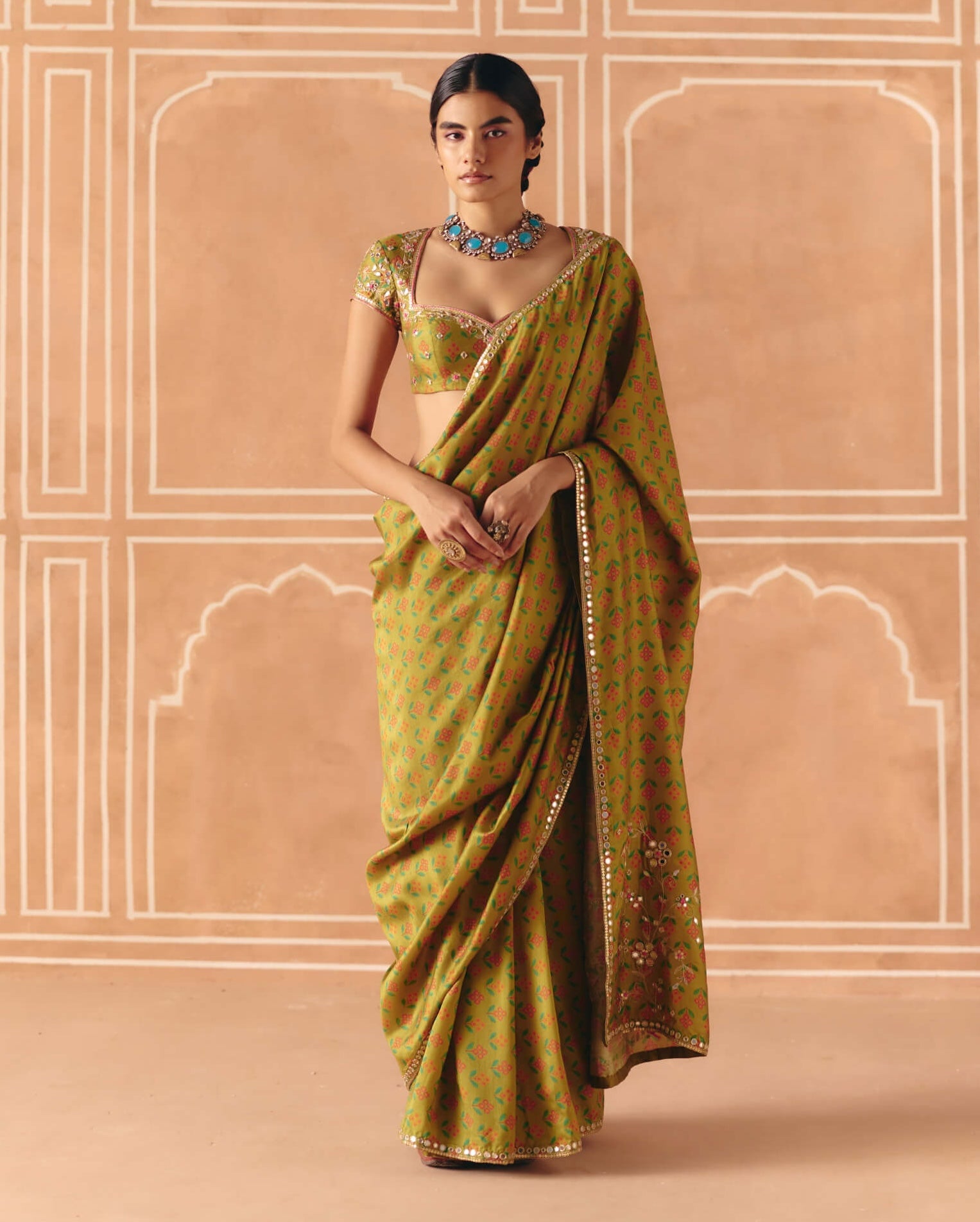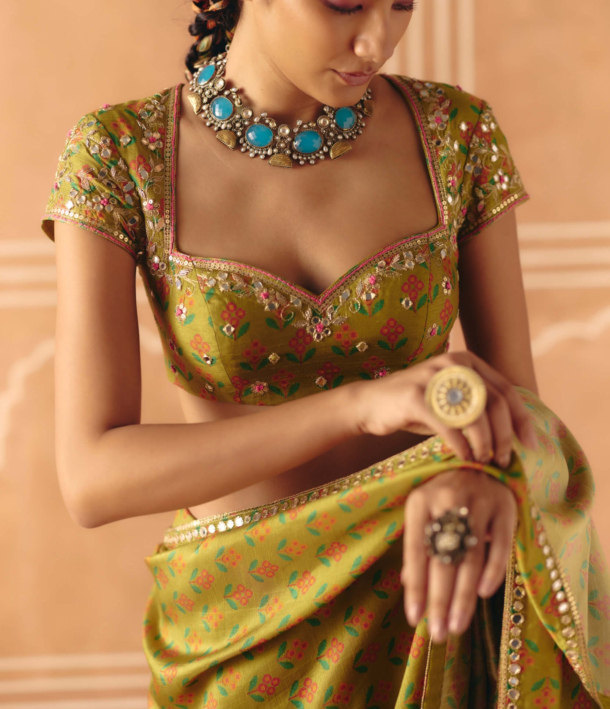 Parrot green sari and blouse
