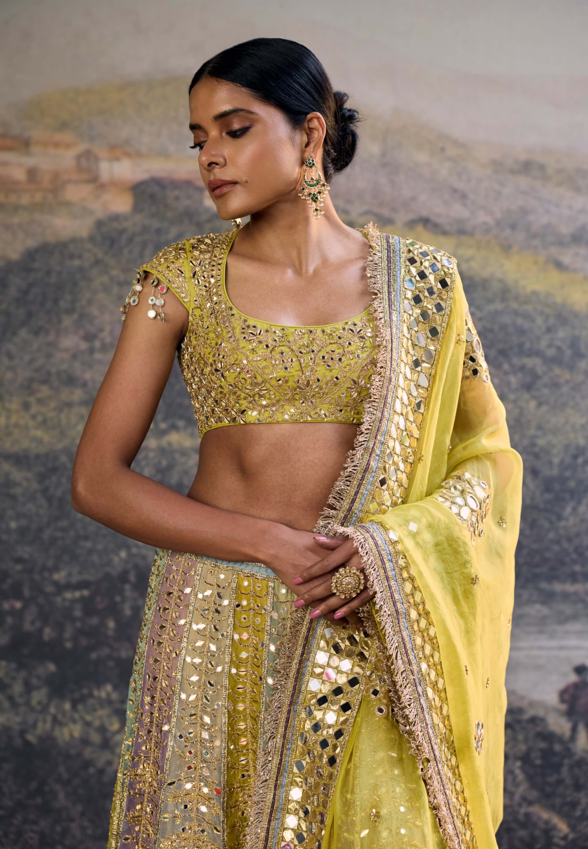 - Fabric: Blouse: organza, lehenga: organza, dupatta: organza