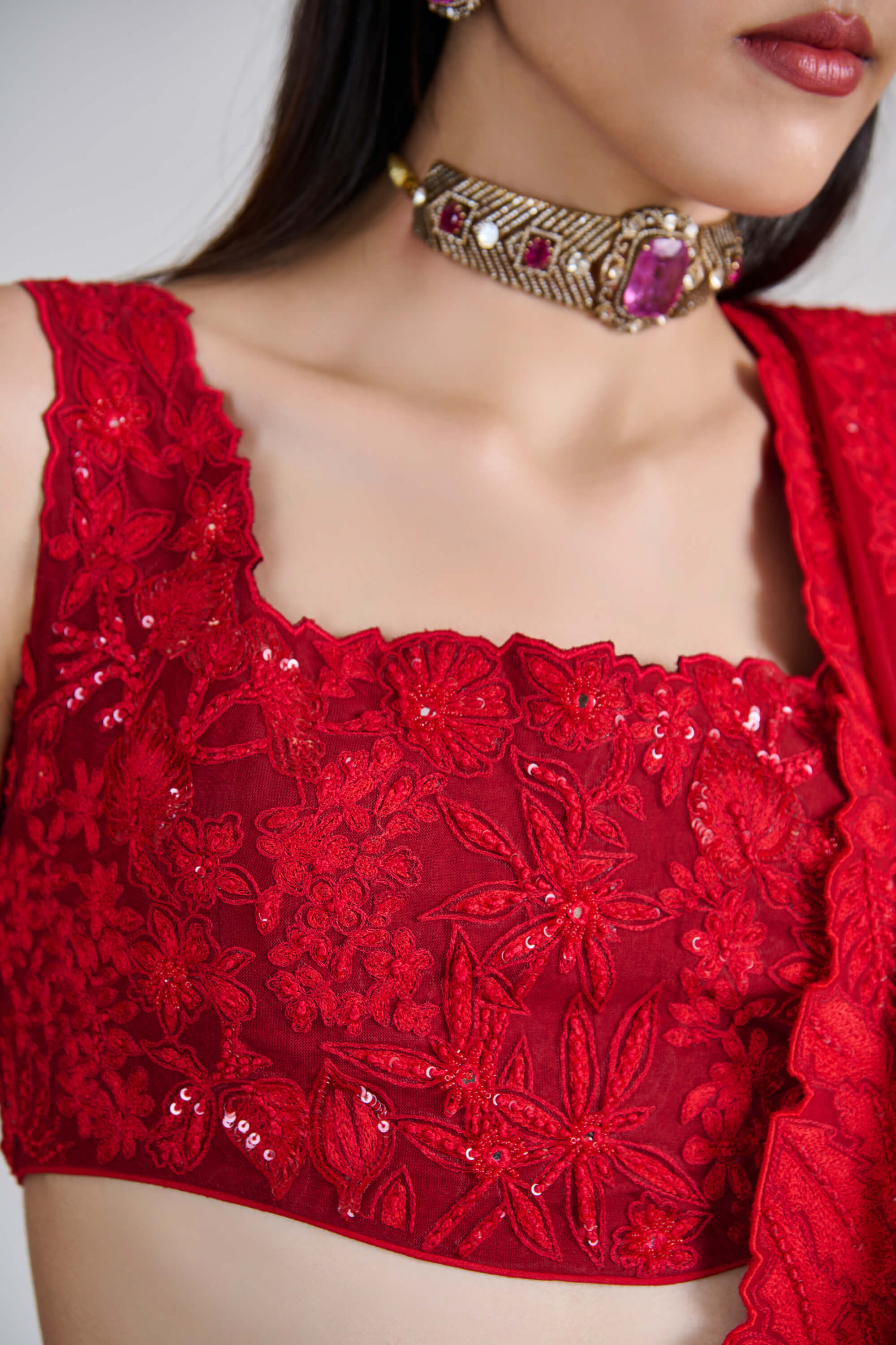 A lehenga featuring tonal assorted-leaf kali lines, paired with a blouse and dupatta. Graceful and classic. Ideal for traditional ceremonies or elegant festive nights.