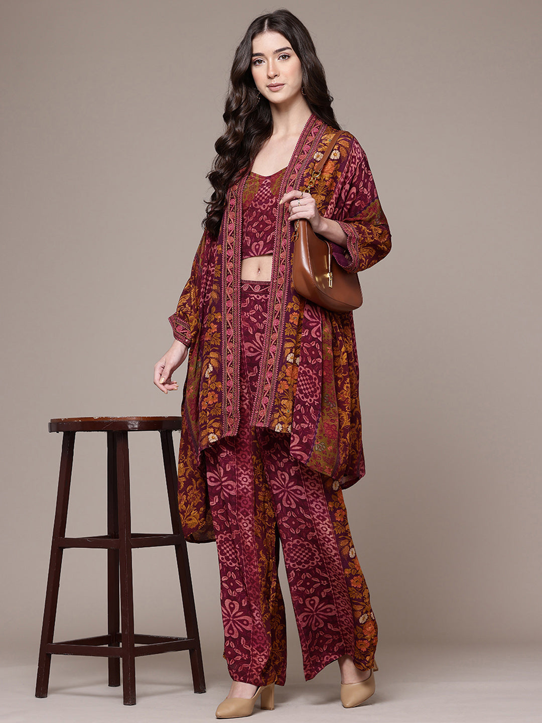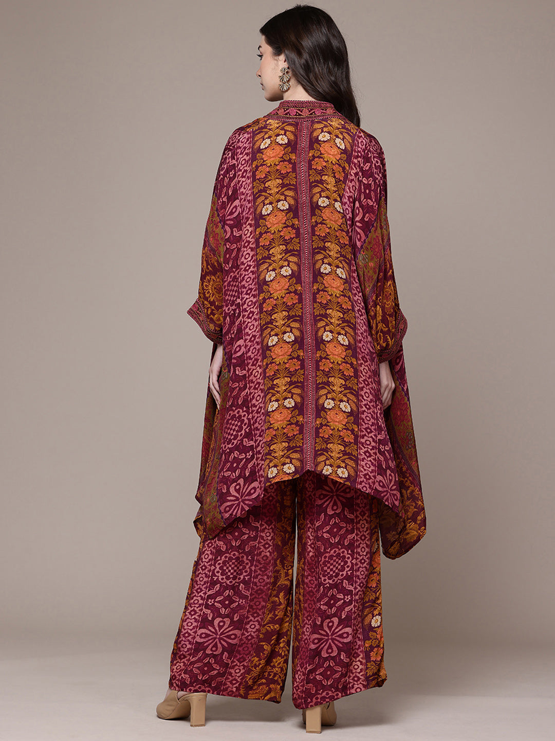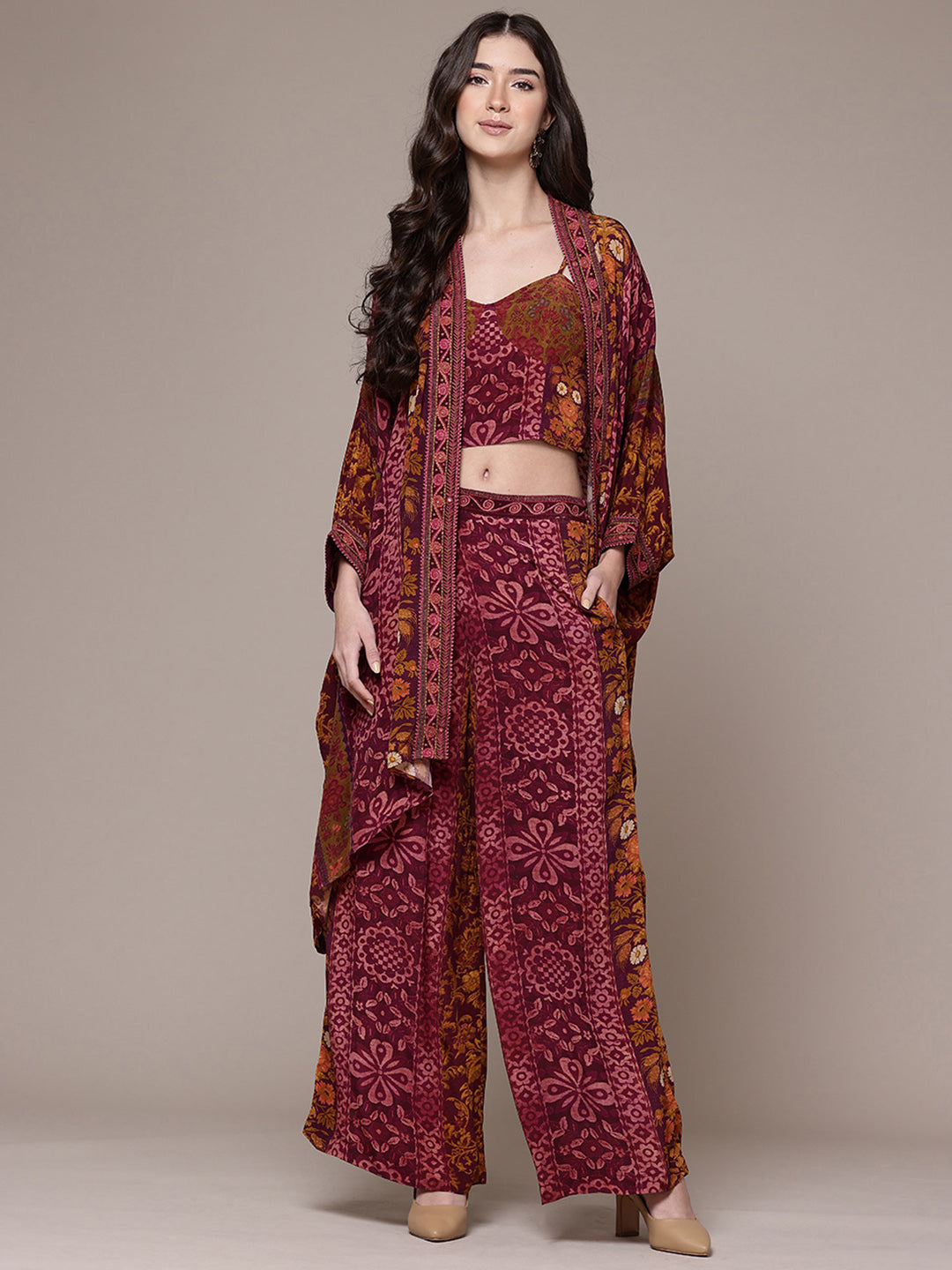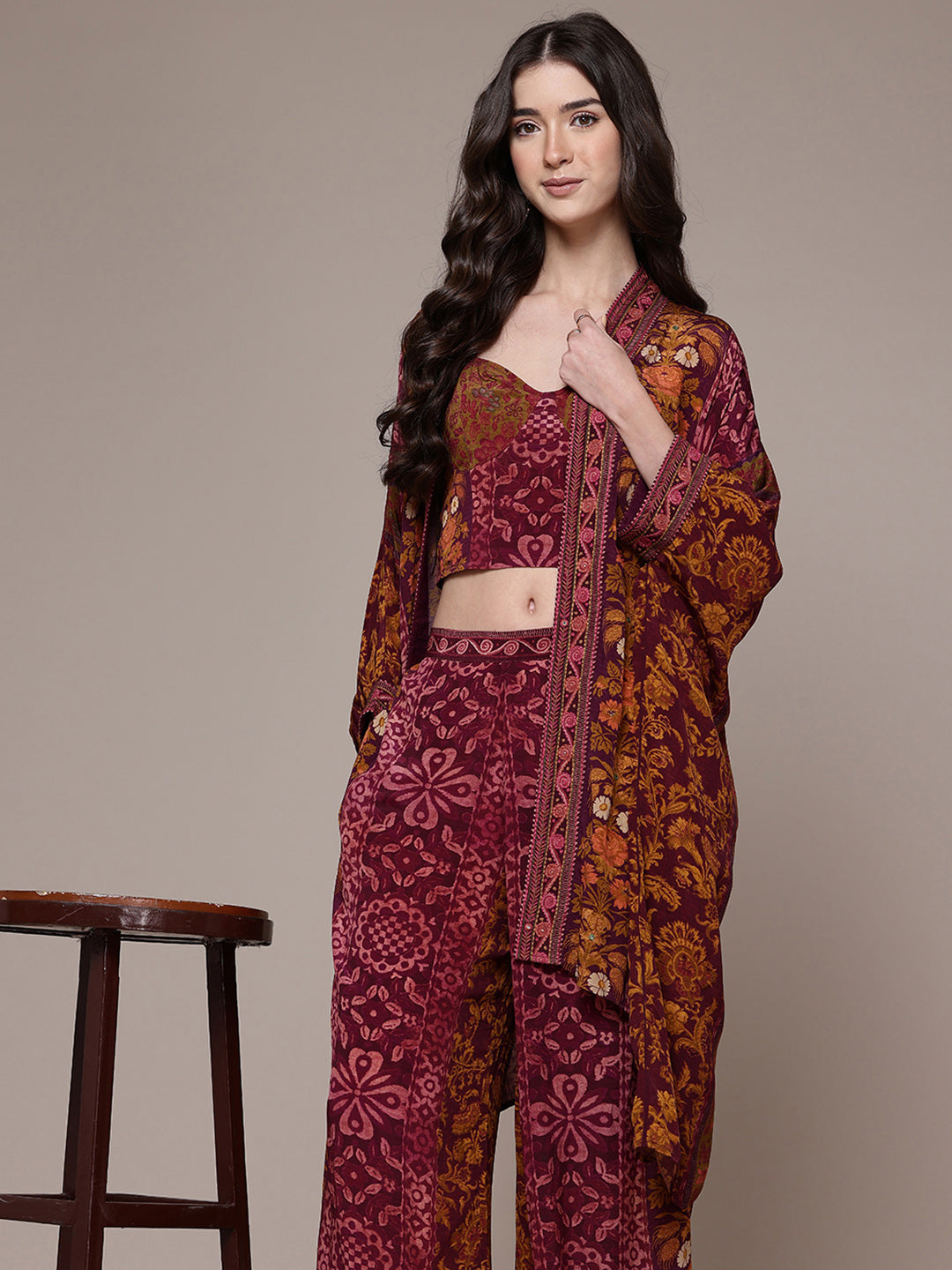 Ethereal and contemporary, this fuschia floral cape set turns everyday dressing into an experience. The bustier and pant combination beneath the flowing cape create balance and drama. Perfect for resort getaways or evening soirées, it’s a statement in motion.