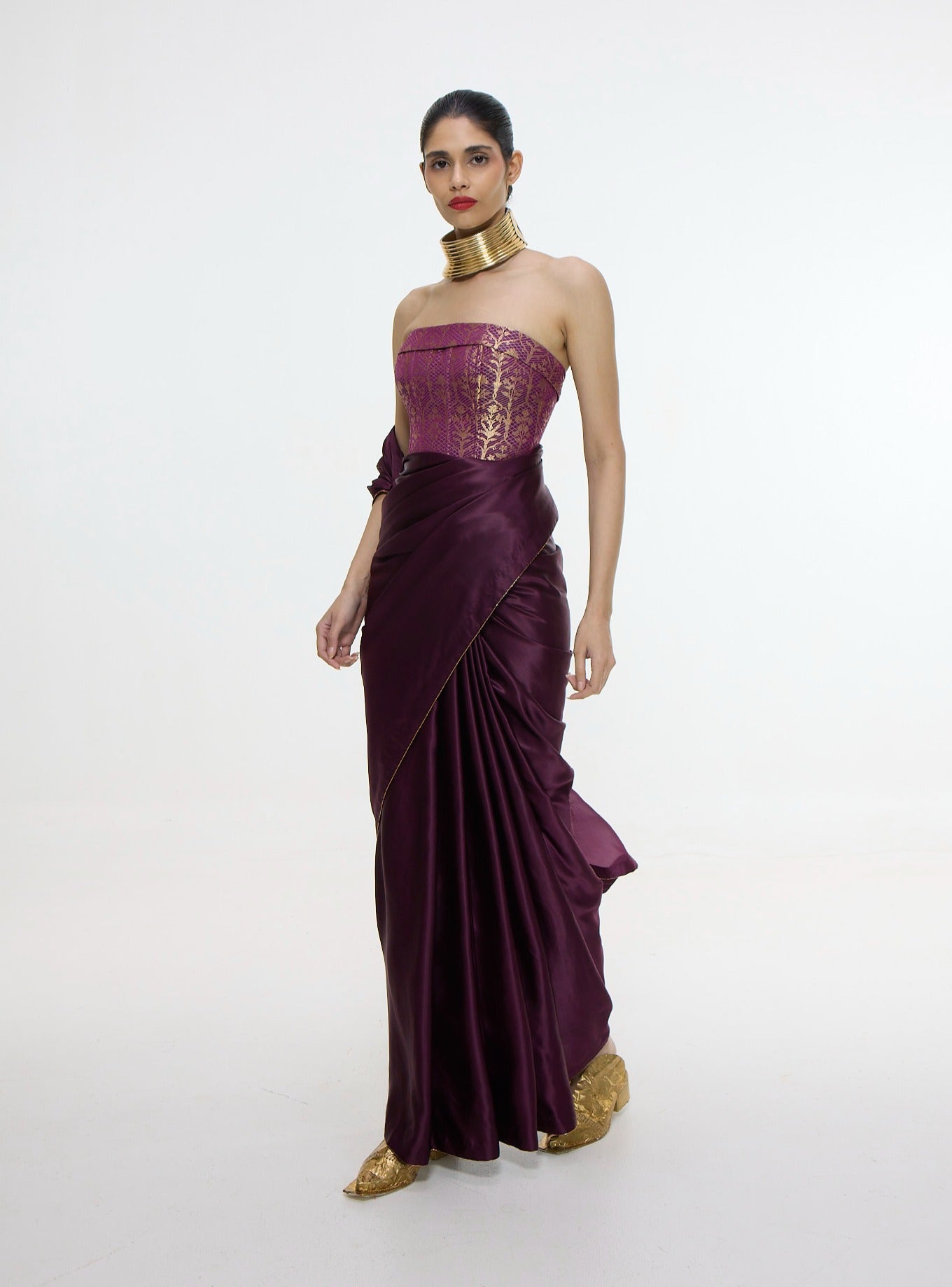 Celebrate sophisticated charm in this maroon mashroo silk sari, handwoven with exquisite embroidery at the pallu. Its luxurious drape and intricate motifs make it perfect for weddings, diwali soirées, or festive events where elegance reigns.