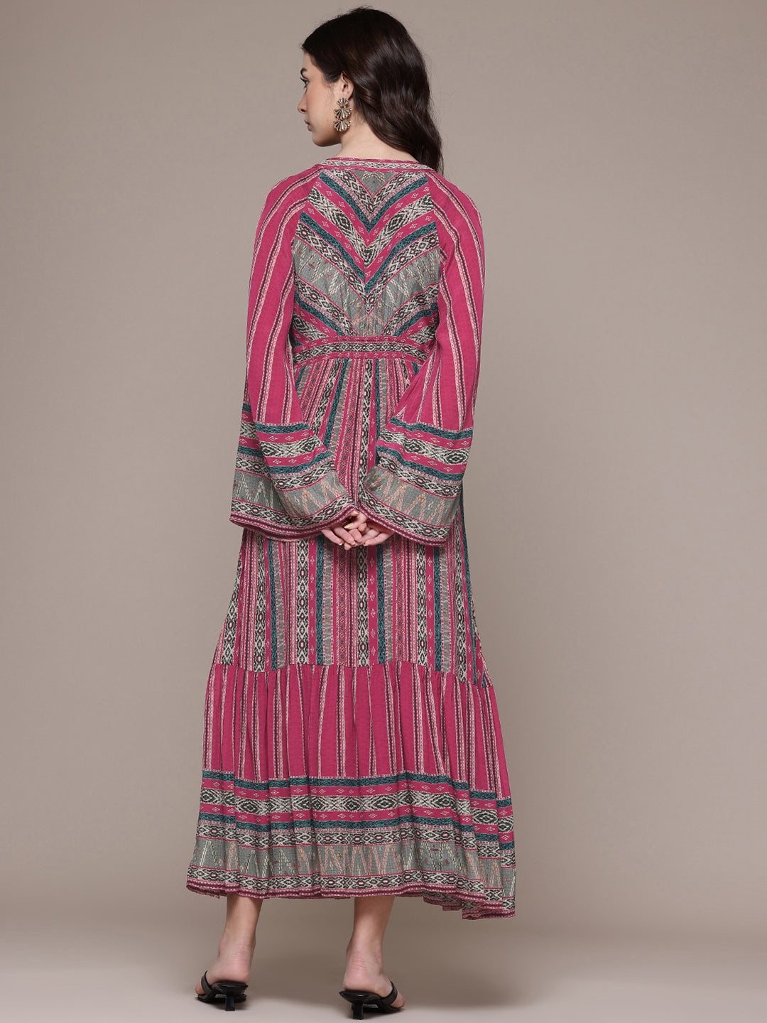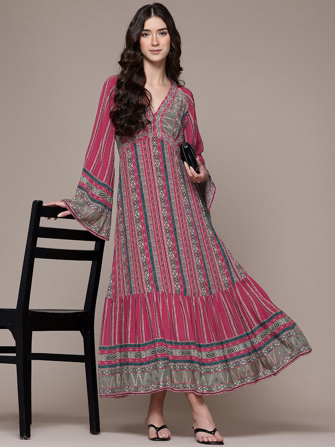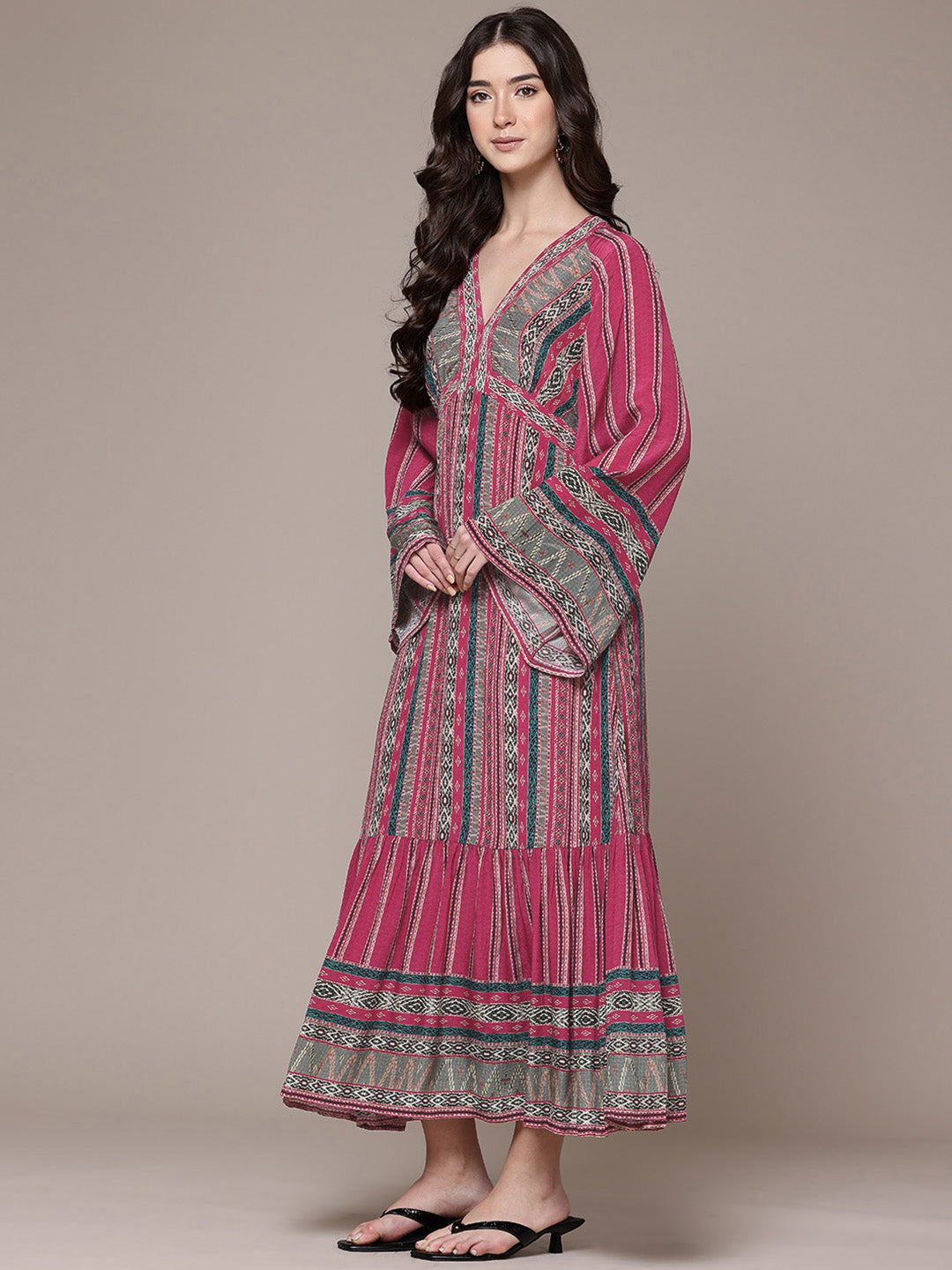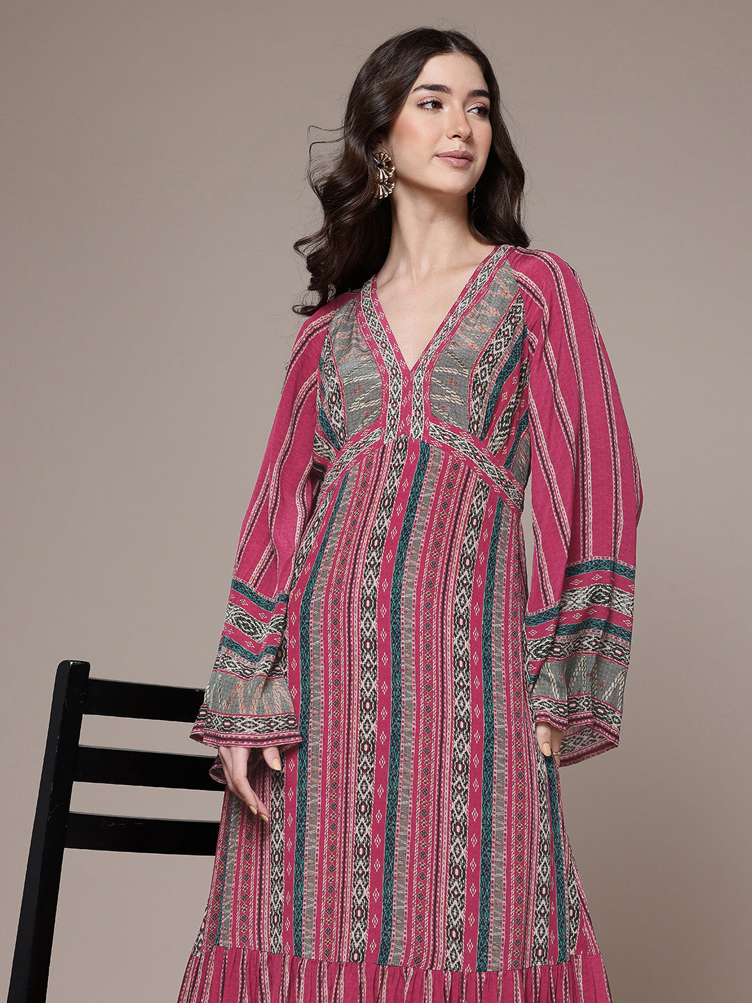 With its bold hue and feminine silhouette, this red cairo dress captures the essence of confident style. The v-neckline and fit-and-flare shape enhance movement and grace, while the full sleeves add structure. Ideal for evening soirées, it pairs perfectly with stilettos and delicate accessories for an effortlessly radiant look.