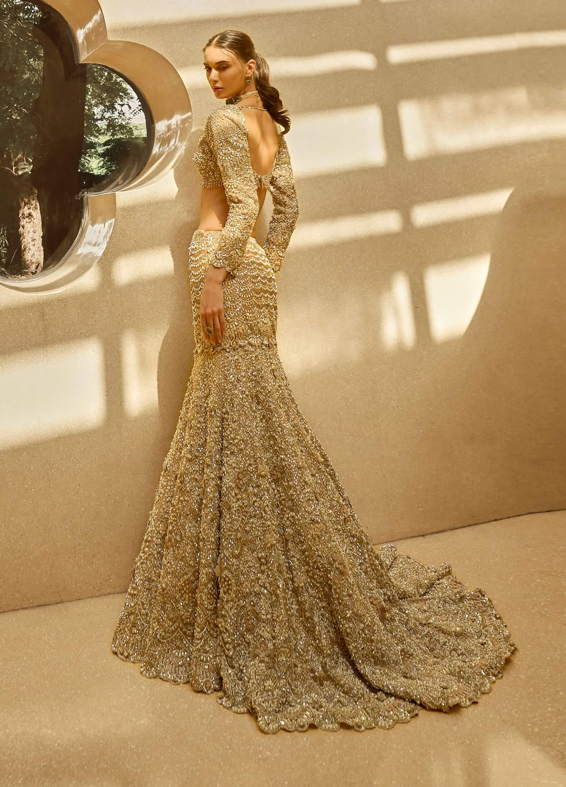 Blossoming in nude-peach softness, this lehenga celebrates delicate bridal romance. A nude peach lehenga set in soft tulle with 3d floral appliqués, pearls, zari, cutdana, salli, and sequins. Paired with a matching sheer dupatta.