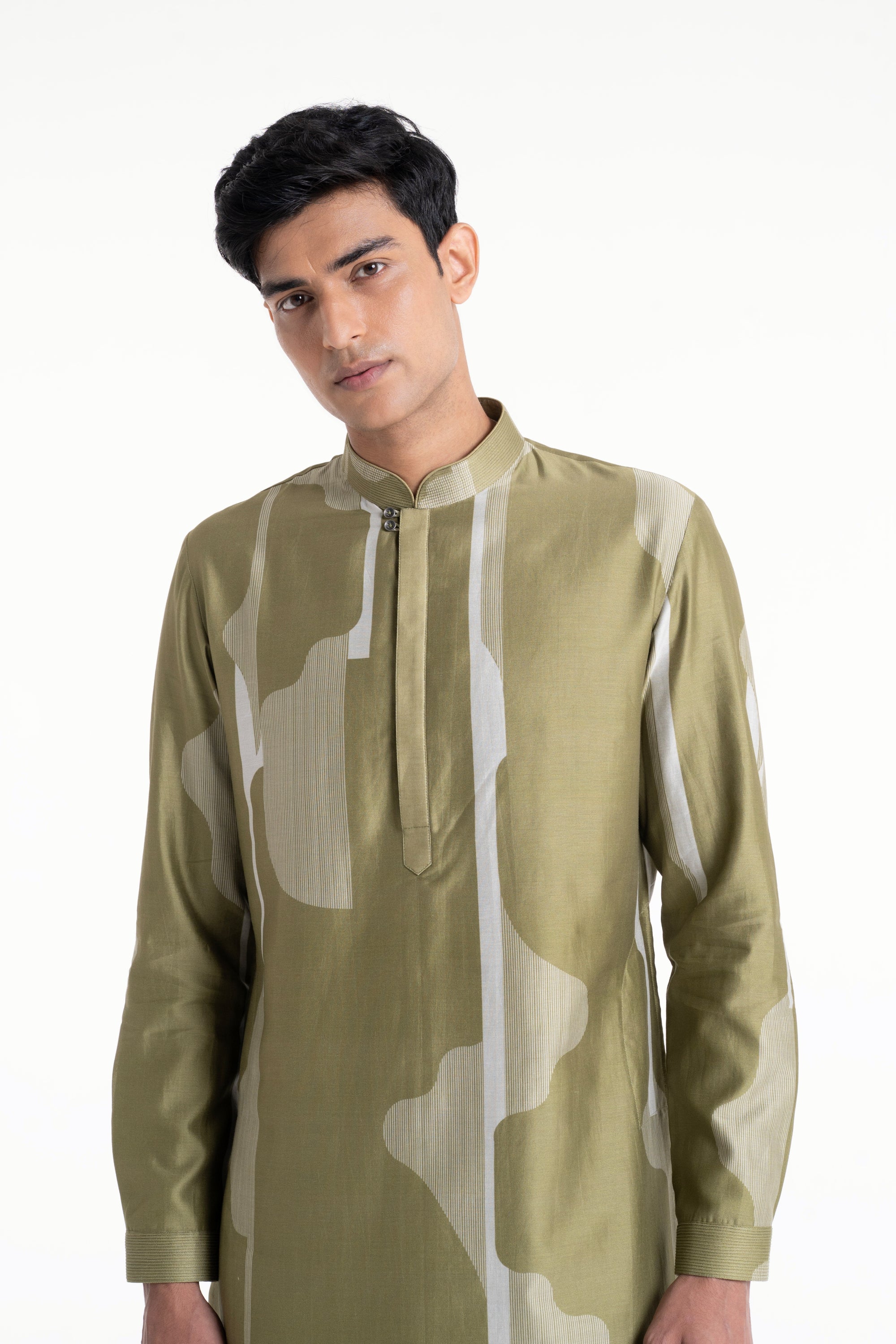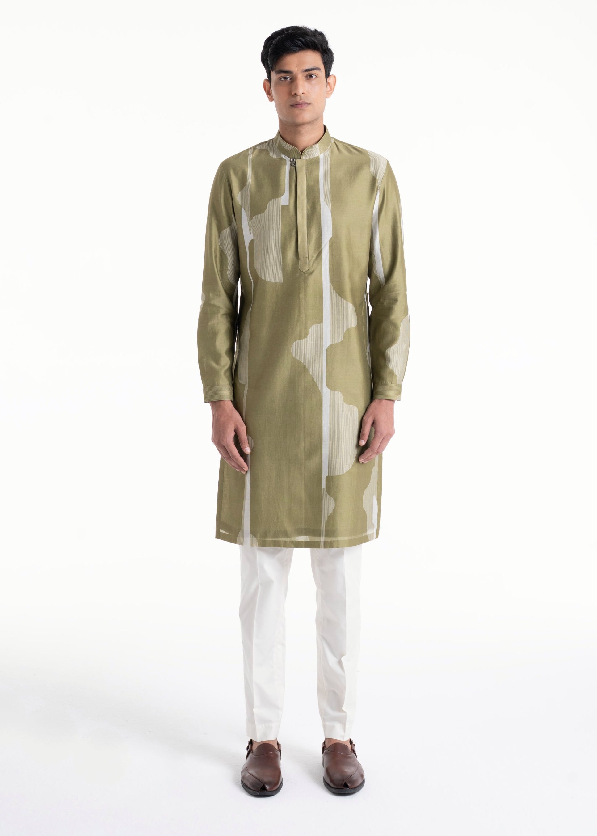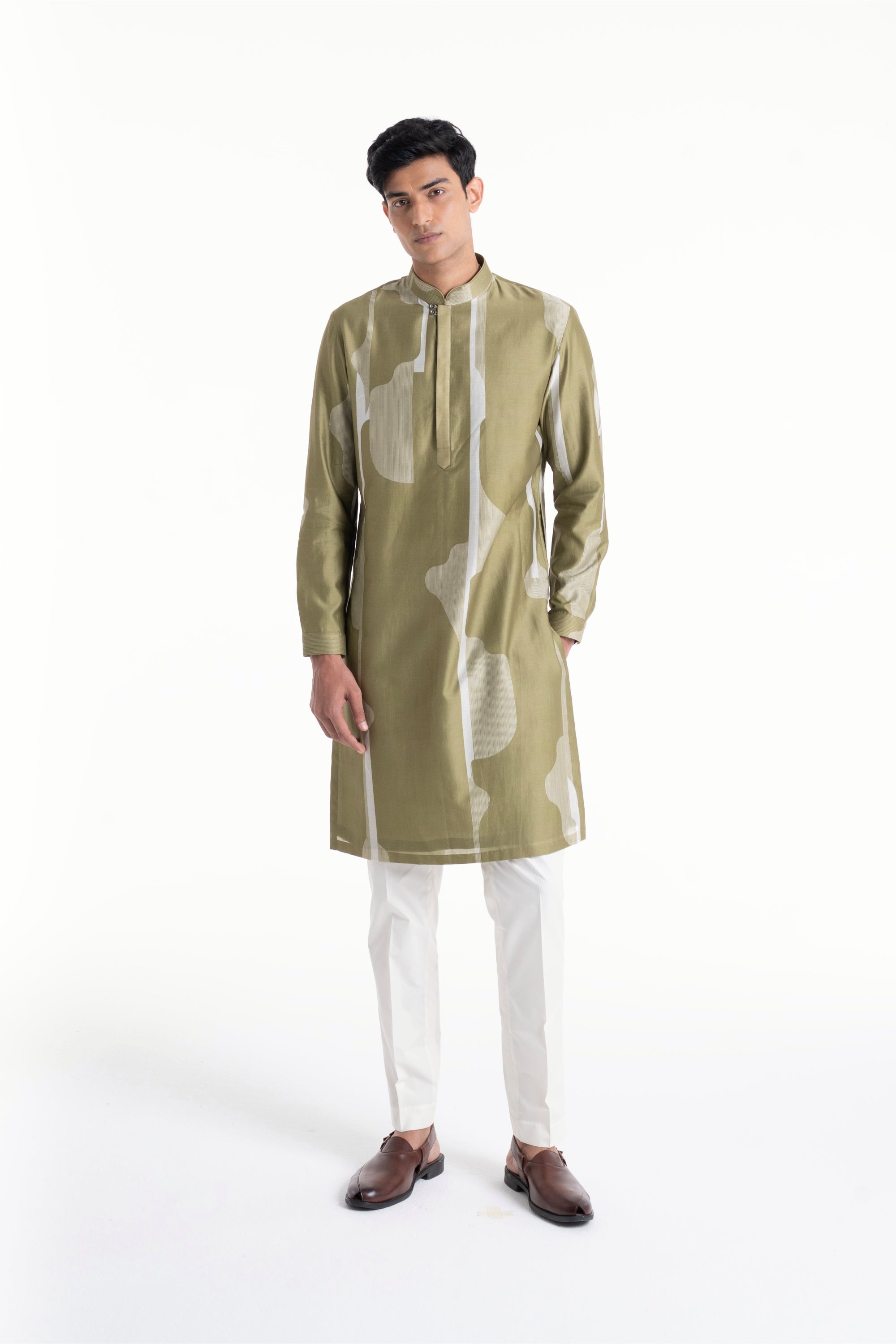 Inspired by nature, this fern printed kurta set in cotton silk chanderi brings understated charm with intricate prints and a structured fit. Perfect for daytime festivities and traditional celebrations.