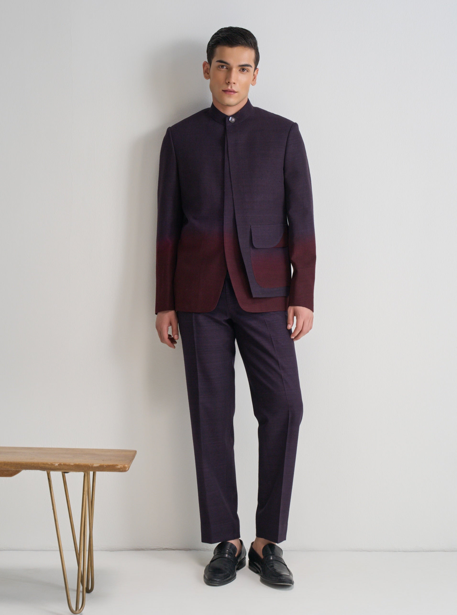 A modern marvel in silk, this ombré bandhgala transitions seamlessly in tone and texture, making it a sophisticated choice for evening festivities and destination celebrations.