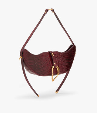 Handcrafted from vegan leather with architectural top handles, this signature Swing bag features a structured silhouette punctuated by the dramatic OH Boss Link in gold. A soft interior lining, card case, and zipper make it equal parts chic and functional. Wear it to fashion week fêtes, stylish soirées, or as a head-turner at cocktail hour.