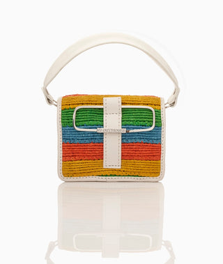 A youthful energy spreads at outhouse as we introduce the holiday season with the holiday raffia furbie. Handcrafted in over 26 hours, an ivory vegan leather creation is overlaid with neatly knotted strands of raffia. The house's iconic oh v monogram takes center, too, to complete the trend-setting design. A complementary sling comes along to help enhance your style quotient!
