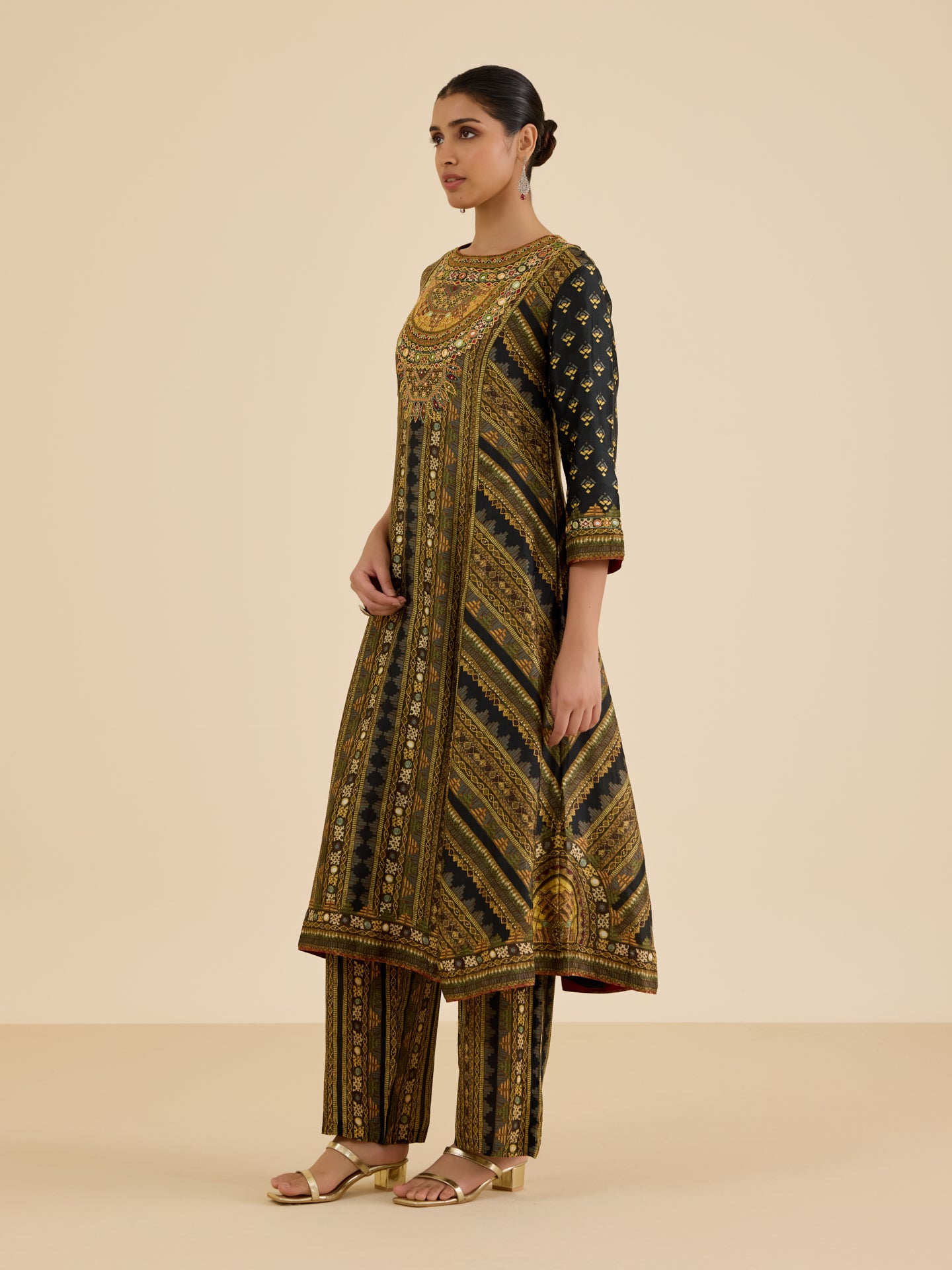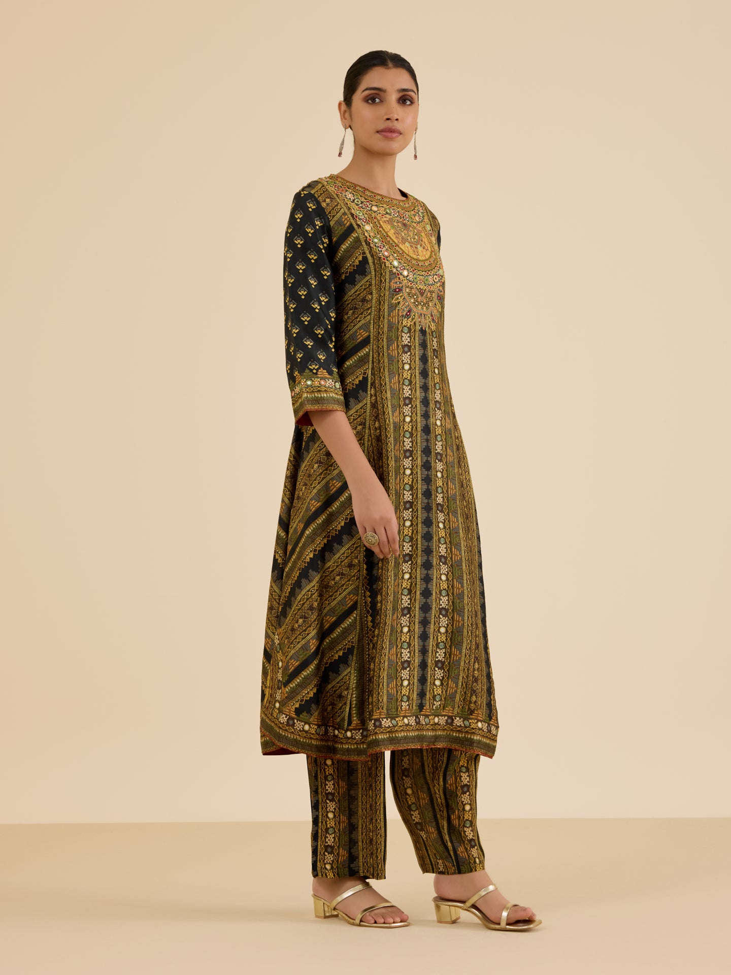 Discover effortless elegance in the black and olive ashina kurta set. The contemporary colour pairing exudes quiet sophistication, while the easy silhouette ensures comfort through long festive hours. A perfect ensemble for refined celebrations.