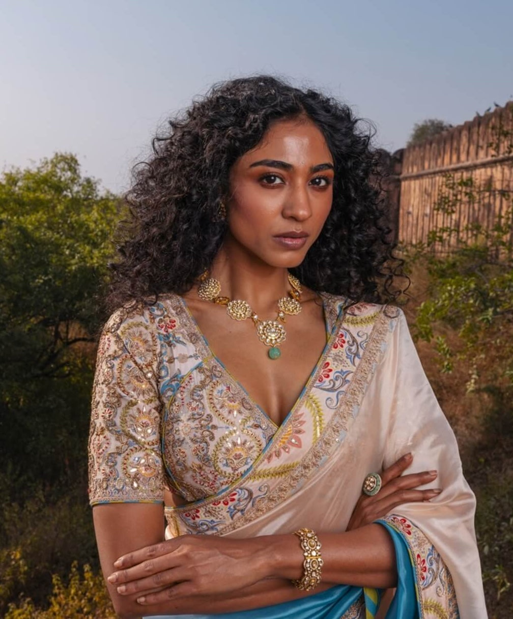 Buttercup mist blue ombre sari and blouse