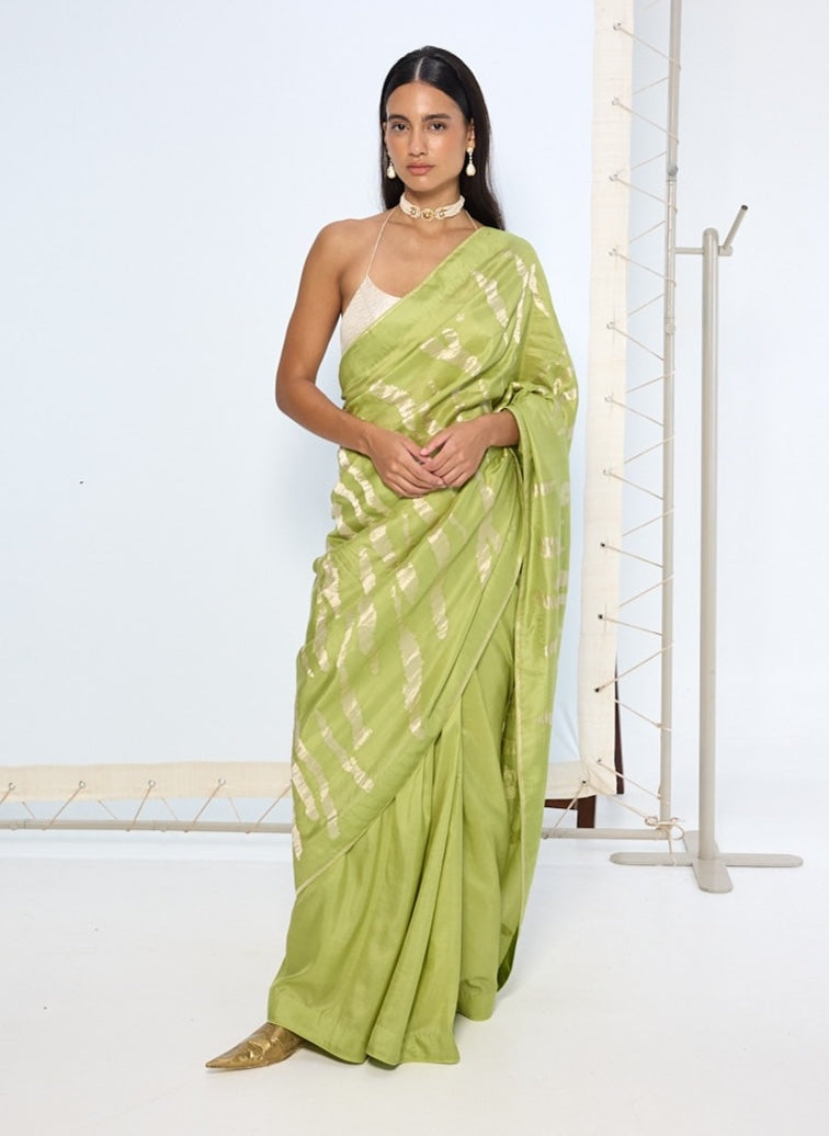 Sage green silk zari sari