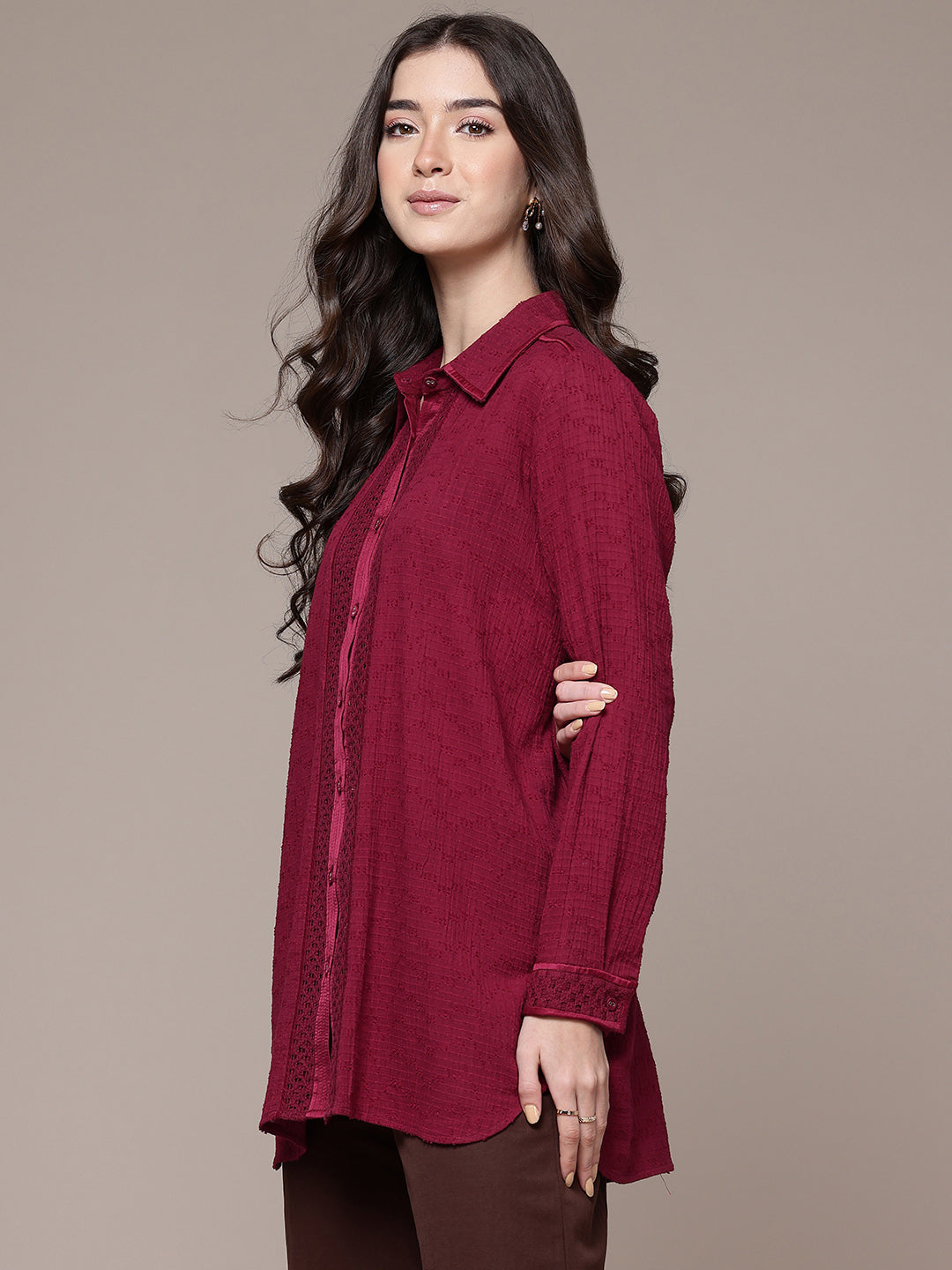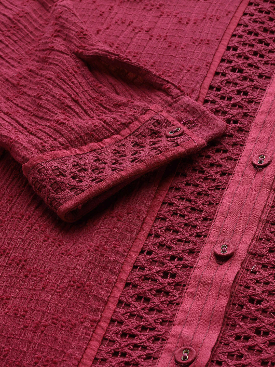 Tailored to perfection, this magenta solid shirt embodies refined simplicity. The full sleeves and structured collar make it versatile for work-to-evening transitions. Pair it with neutral trousers and sleek accessories for an understated statement.