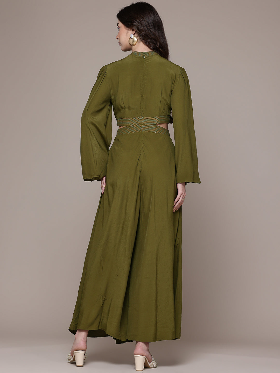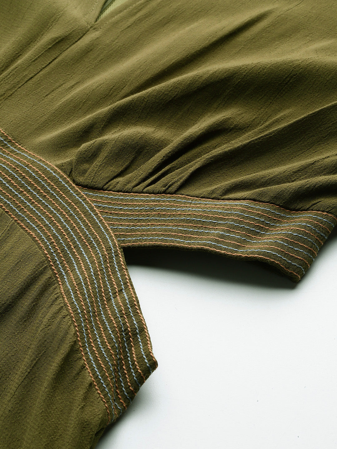 A sleek interpretation of modern ease, this olive jumpsuit is a lesson in understated confidence. The straight silhouette and keyhole neckline offer refined simplicity, ideal for weekend getaways or evening cocktails. Elevate it with statement heels and layered accessories for a touch of drama.