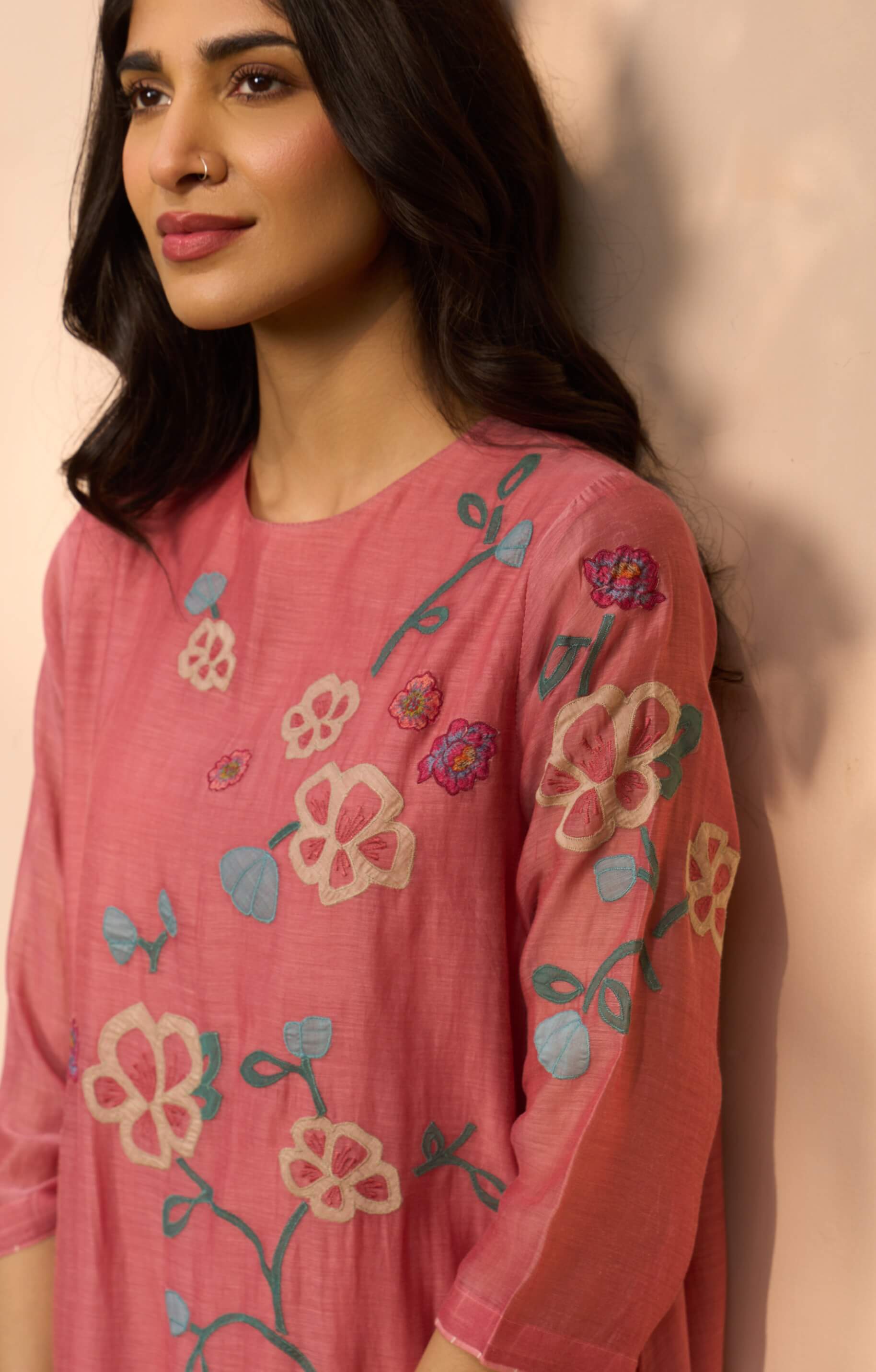 Featuring delicately placed appliqué blooms and coordinating checkered pants, this hibiscus appliqué co-ord set offers a relaxed yet polished silhouette.