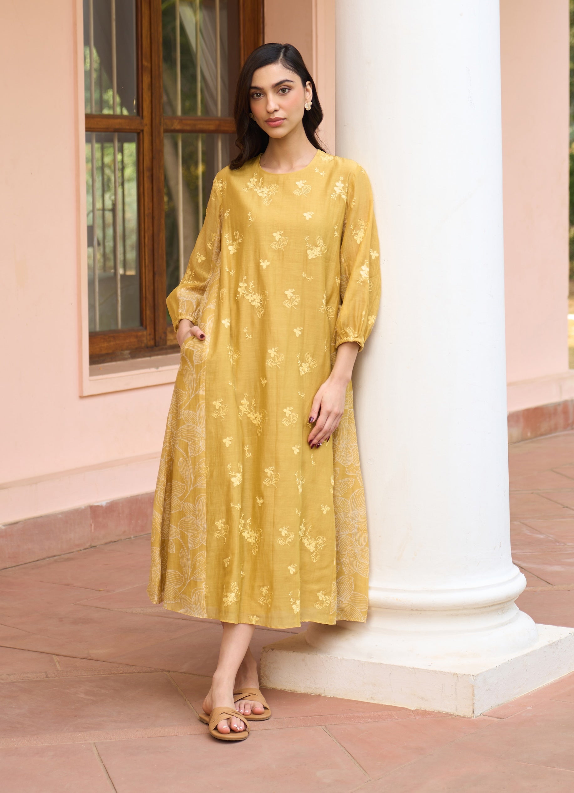 Featuring delicate embroidered blooms across an airy silhouette, this rue embroidered dress with gathered sleeves offers effortless comfort and elegance.