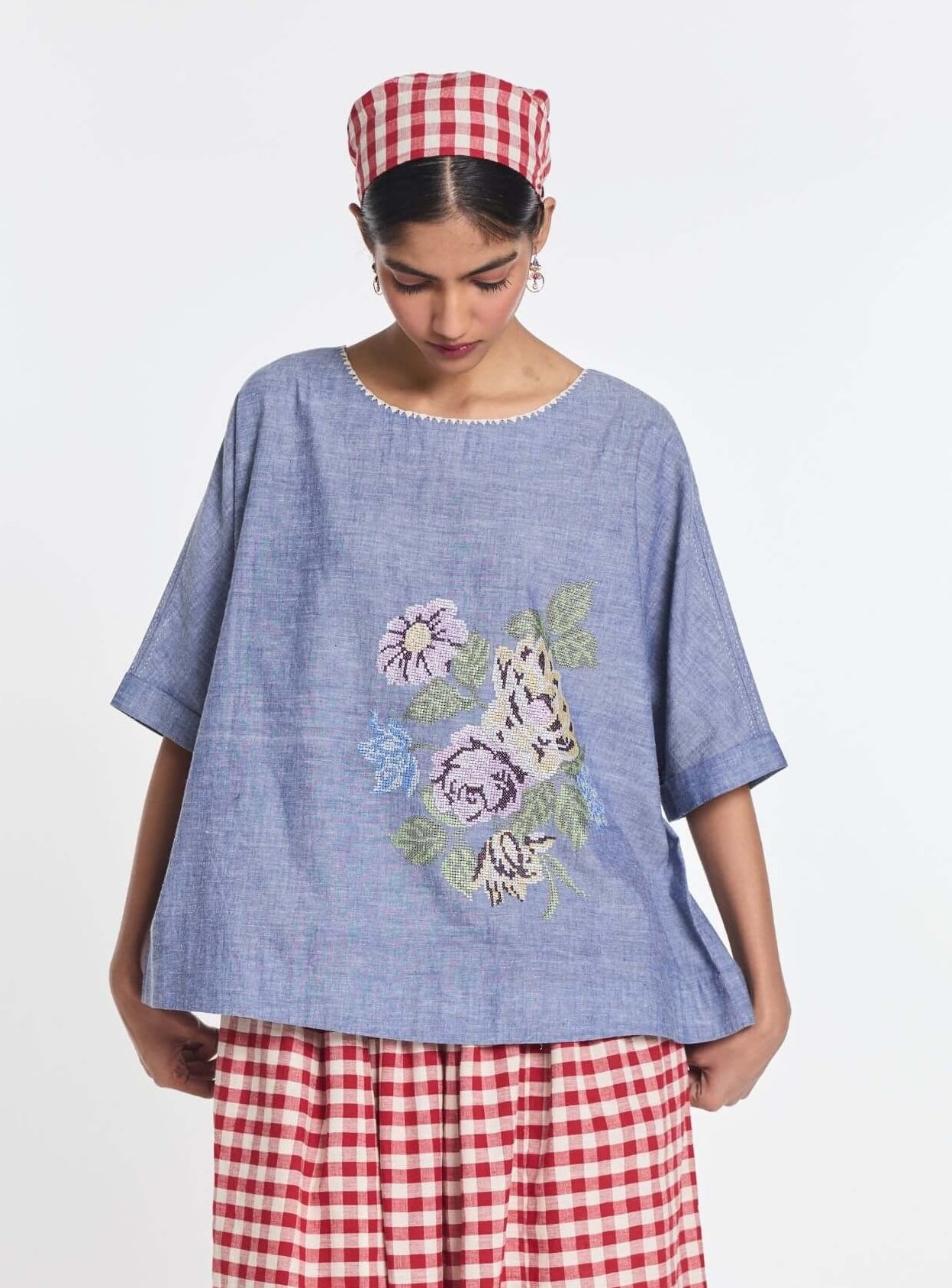 Modern stylised luxury defines this embroidered relaxed top crafted to balance comfort with statement detailing. The relaxed fit allows the intricate embroidery to stand out effortlessly. Sophisticated yet easy to wear. Ideal for brunch celebrations, daytime outings, and elegant casual events.