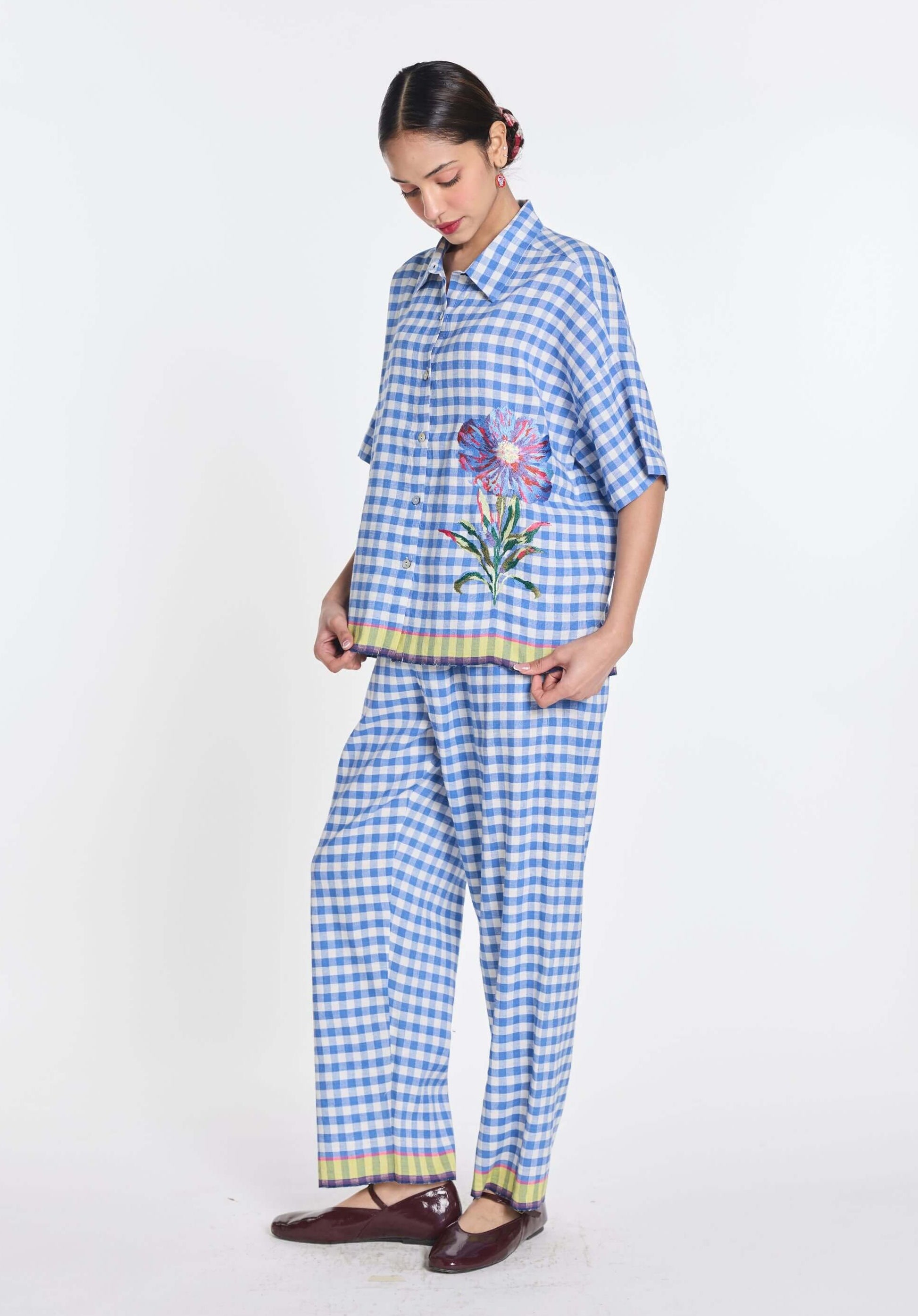Graceful stylised luxury takes form in these elasticated pants crafted with a clean silhouette and relaxed elegance. The fluid structure ensures both comfort and sophistication. Designed for effortless modern dressing. Ideal for weekend lunches, vacation evenings, and stylish day gatherings.