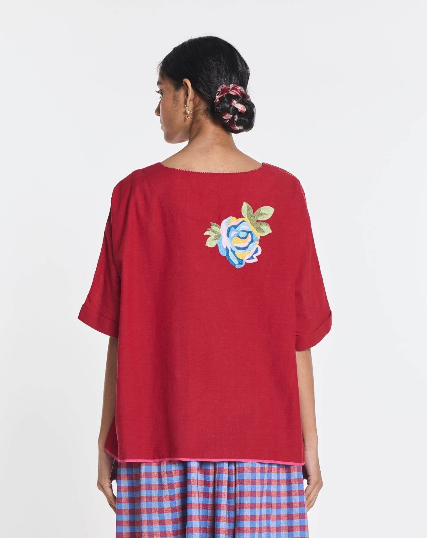 Radiating stylised luxury, this embroidered relaxed top balances soft tailoring with intricate craftsmanship. The easy silhouette creates fluid movement while the detailed accents add refined charm. Designed for elevated everyday dressing. Perfect for weekend lunches, daytime celebrations, and gallery outings.