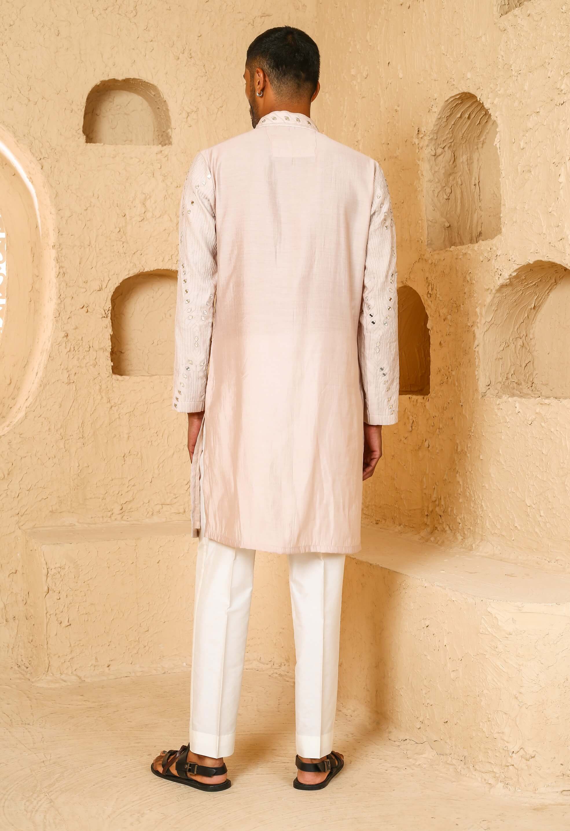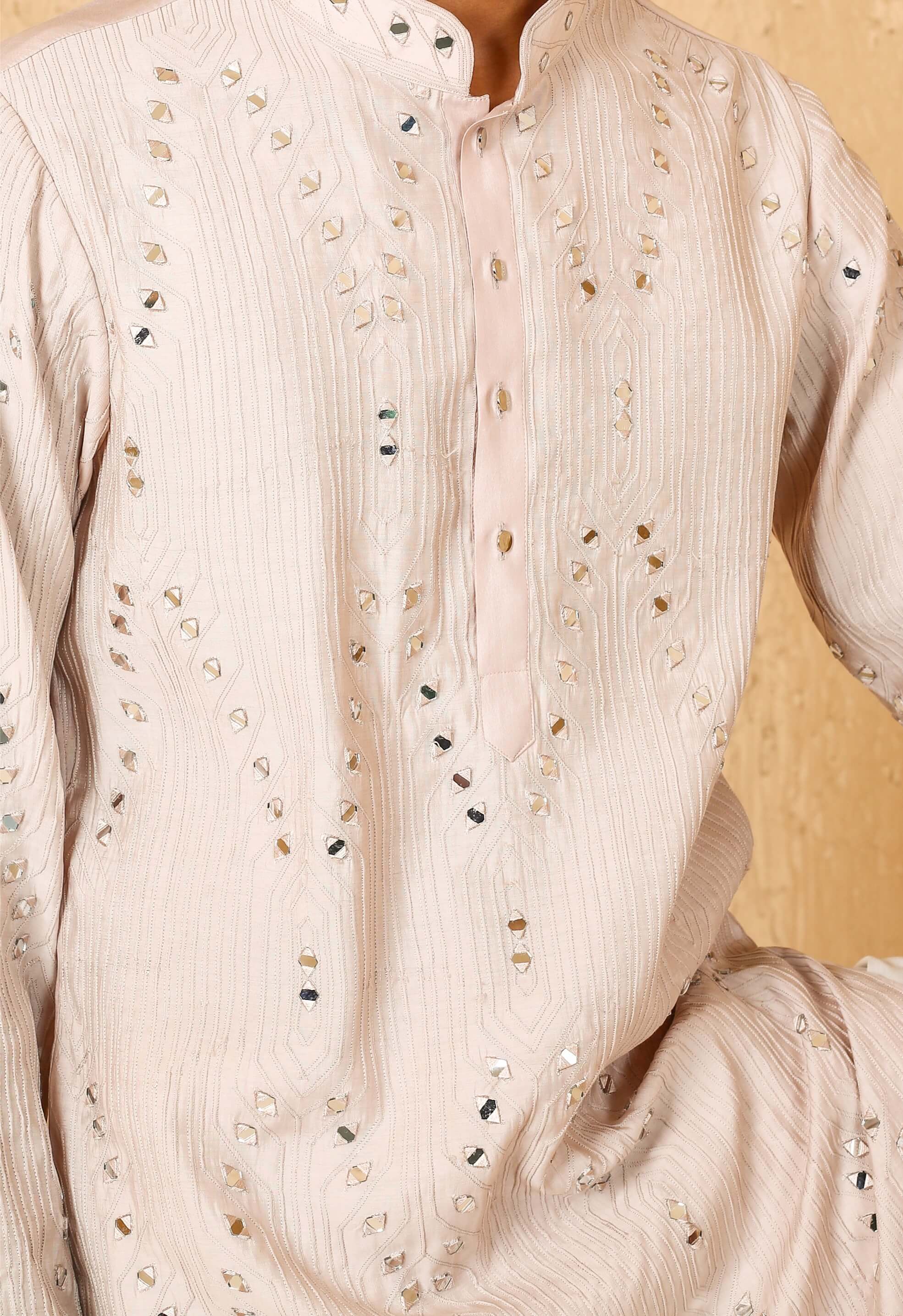 Light beige mirror work kurta with pant