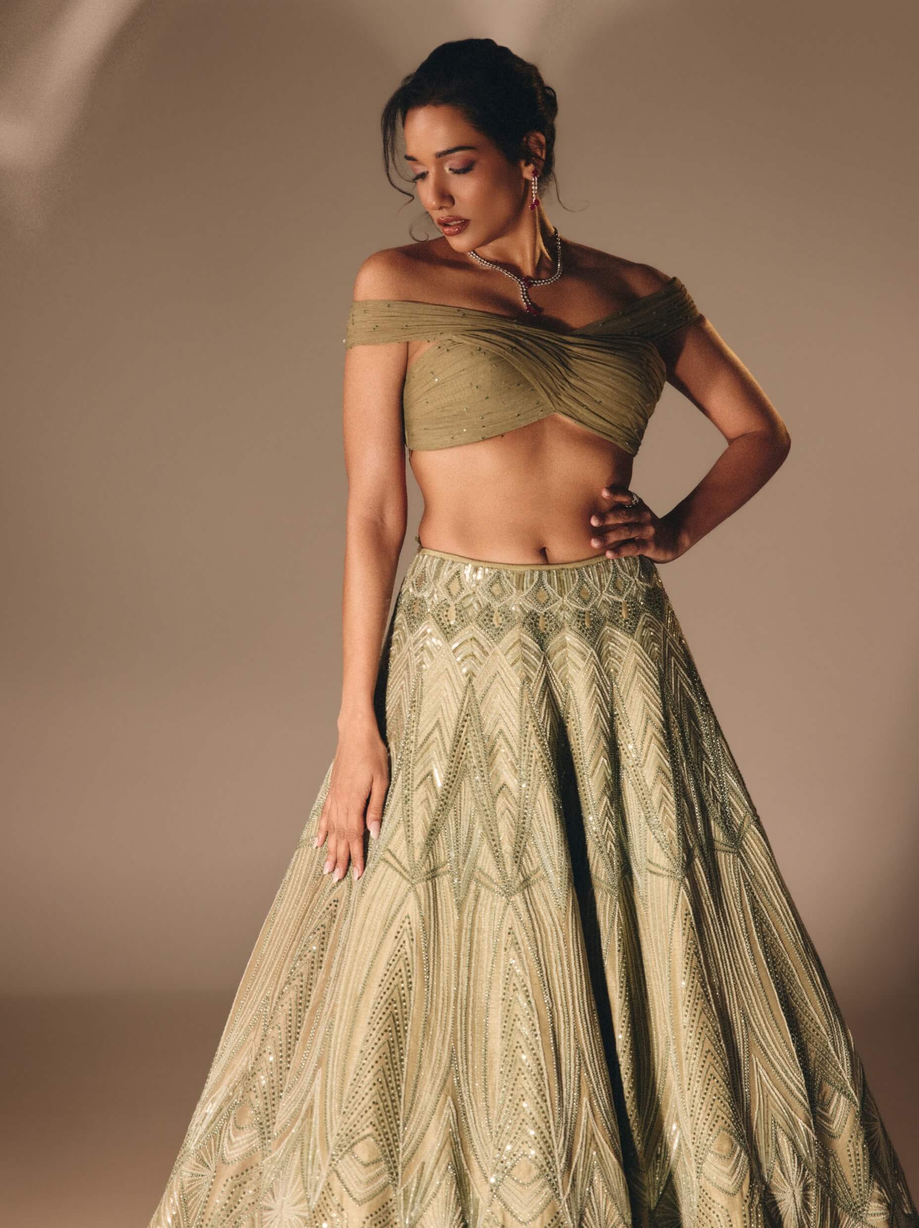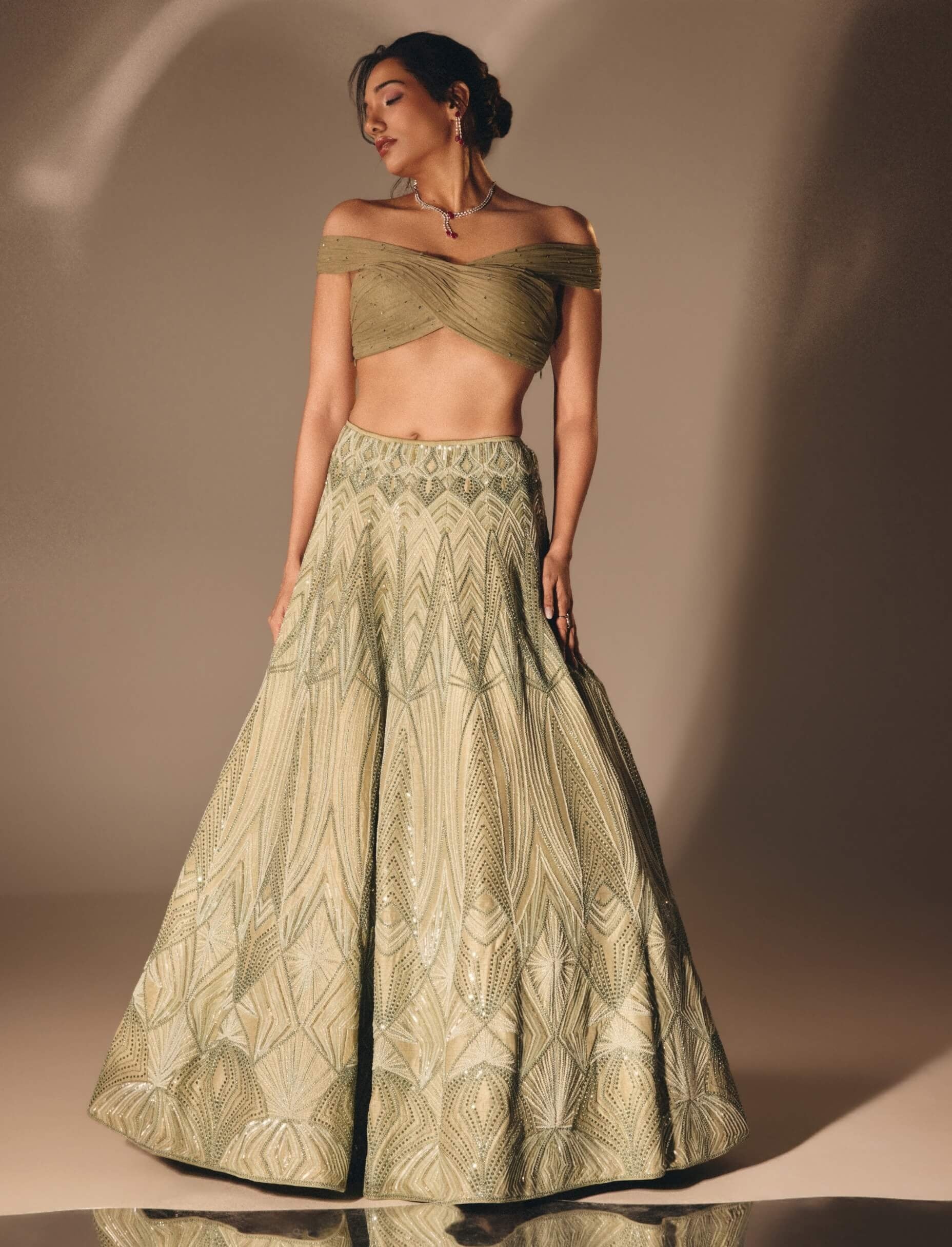 Sage green cutdana sequin lehenga set