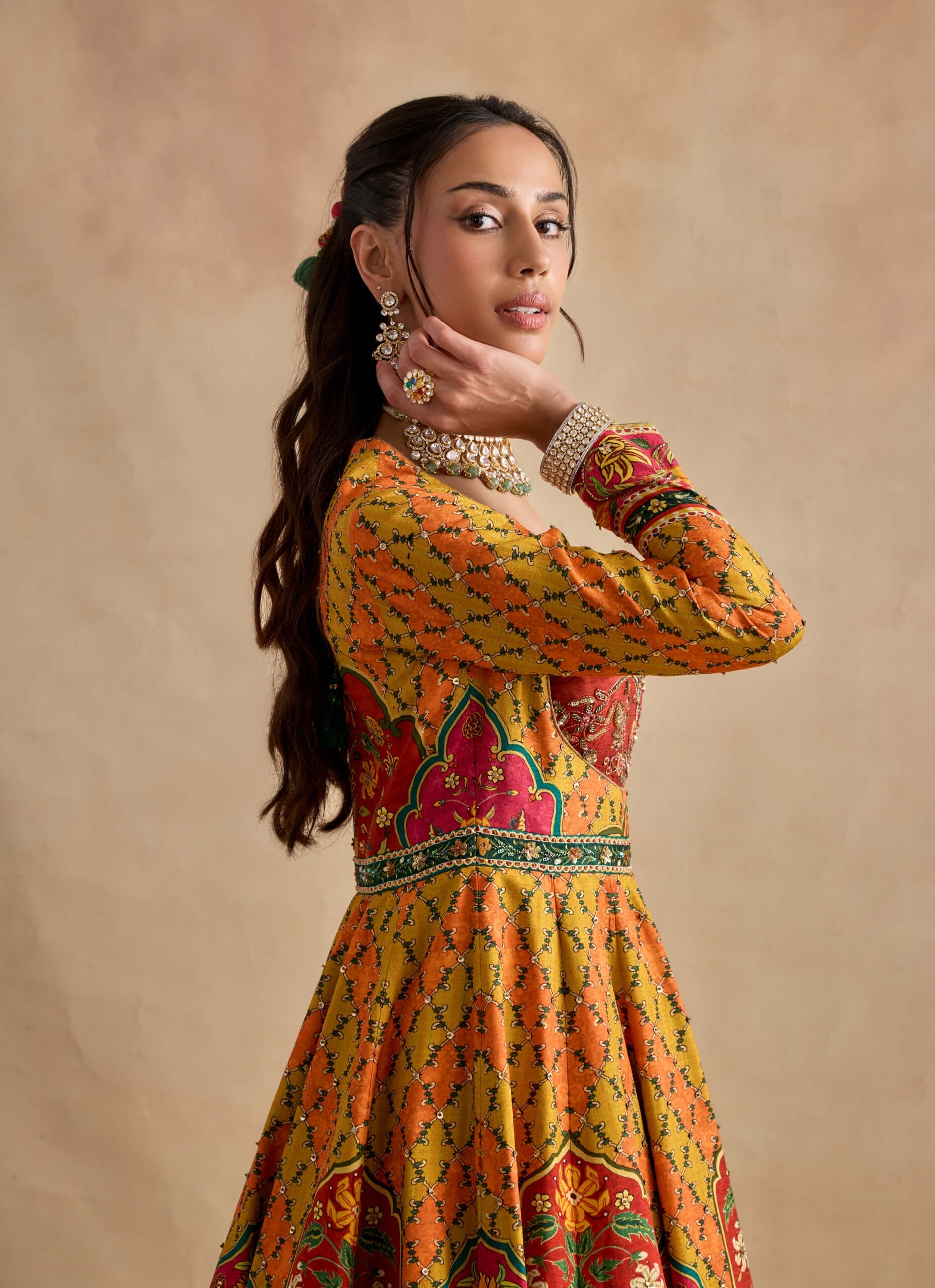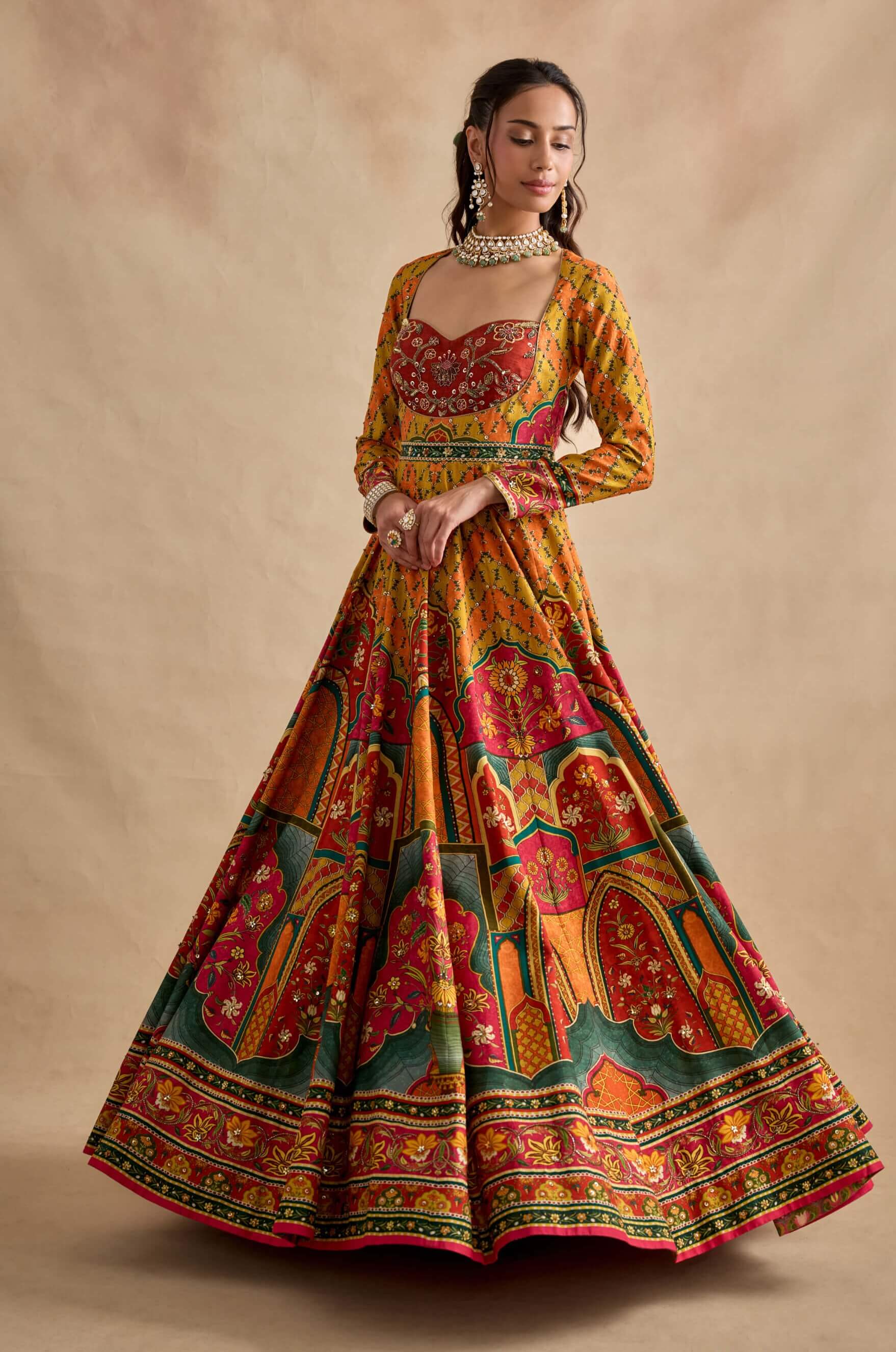 Sandhya mustard multicolour anarkali set